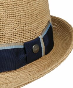 This Western hat is made by hand from high-quality Panama straw in a tradition-consciously authentic shape. It wins over the wearer qualitatively with summery lightness and the flexible, slightly airy workmanship. The visual arguments of the straw hat are the subtle heathered design and the colourful patterned trim band made of fabric with side bow and brand pin, which is shown off to excellent effect on it.