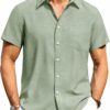 - Fabric: Mens Casual Button Down shirt is made of high quality cotton linen fabric. Feature with Breathable, Lightweight, Skin-friendly, which can resistant shrink, provide you feeling cool and comfortable all day