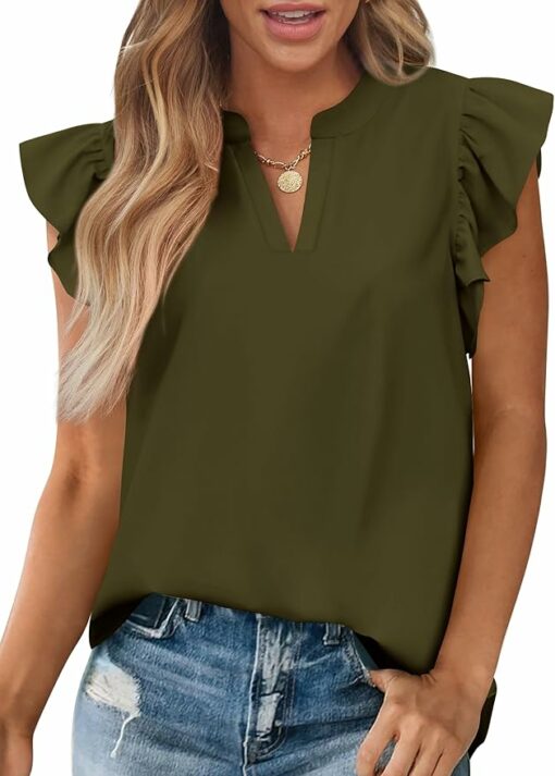 Be the first to review “Casual V Neck Ruffle Cap Sleeve Blouse IP17” Cancel reply