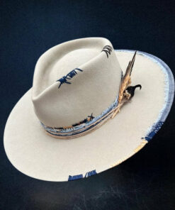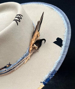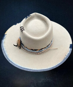 City Slicker Fedora in Beige with Feather Blue Patchwork and Band