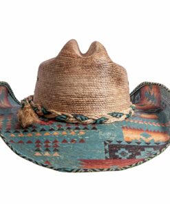 The Cassius Straw Cowboy Hat, a bold and stylish accessory for those who appreciate Western flair. The Cassius features an eye-catching Aztec print on the brim and a trimmed rim, adding a touch of uniqueness to the classic cowboy hat design. Complete with a cloth and straw weaved hatband, this hat exudes rugged charm and sophistication. With a 4 1/4″ brim and a 4″ crown, the Cassius offers both style and functionality. Available in a natural color with Aztec print details on the brim and cloth trim, this hat is a standout piece for any Western enthusiast. Elevate your look with the Cassius and embrace the spirit of the Wild West.