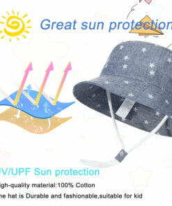 The cute cartoon stars print adds a playful touch to the hat, making it perfect for everyday wear or special outings. The bucket hat design ensures full coverage and sun protection for your baby’s delicate skin, whether you’re spending time outdoors or simply enjoying a day out.