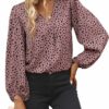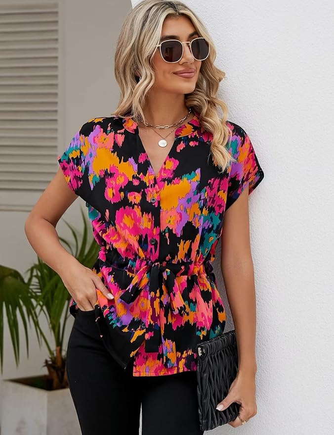 - [Peplum Tops for Women]: The elegant blouses for women features flat collar, short kimono sleeves, button front, self tie, drawstring waist detail and peplum hem