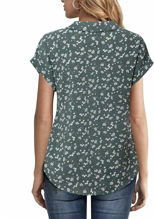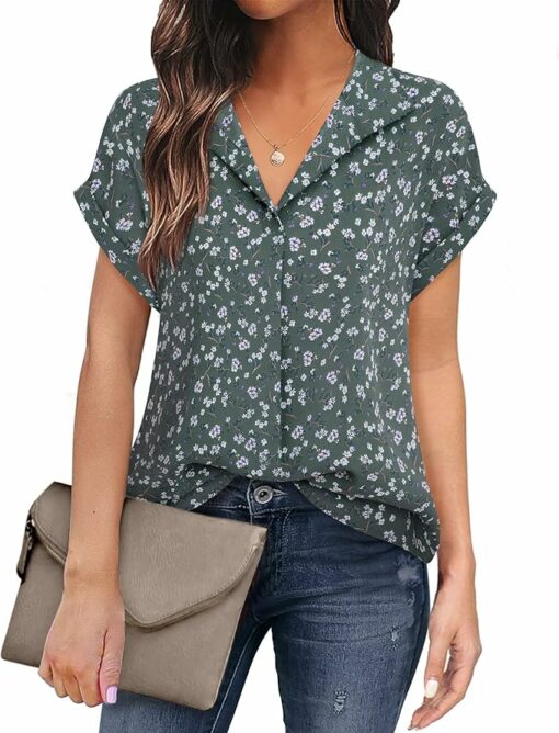 - Material: 100% Polyester.High-quality chiffon material.soft,wrinkle free,lightweight,breathable and not see-through.When wearing these short sleeve blouses for women,you will feel that the fabric is silky smooth and skin friendly.