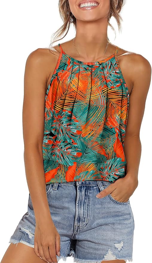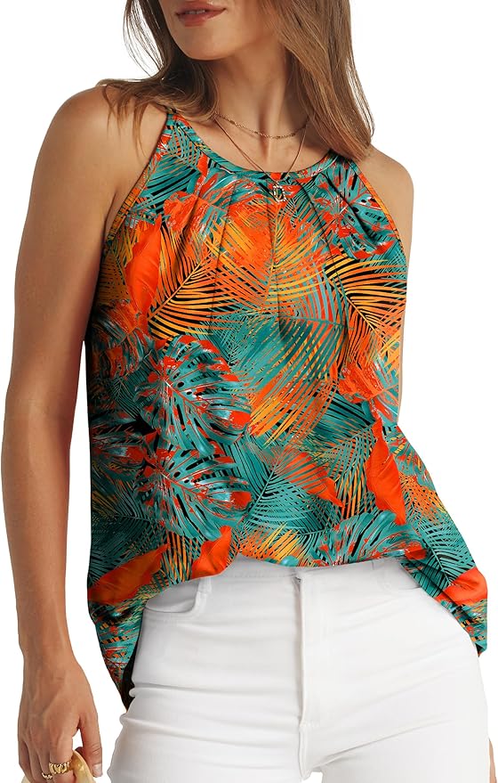 - Design:Halter neck tank tops with pleat in front, curved hem and loose fit. It’s flattering and flowy to hide the stomach which suitable for any body shape.