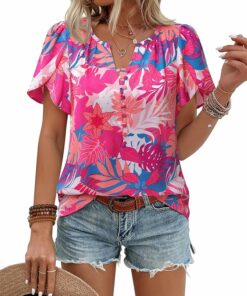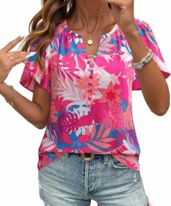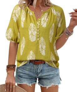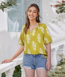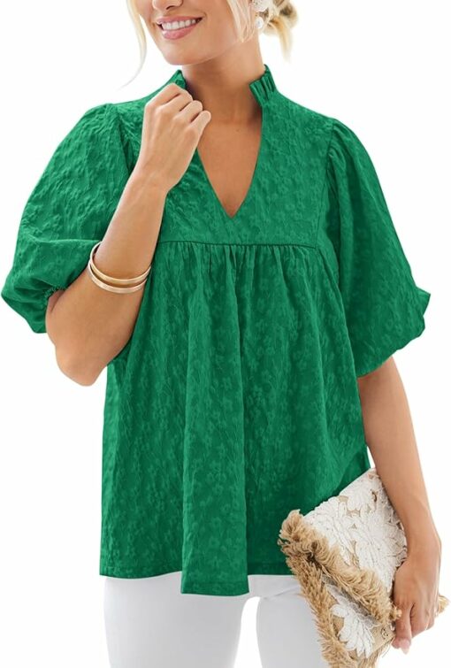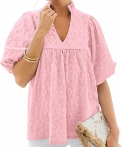 - Material: Crafted from a lightweight and breathable 100% Polyester fabric, this jacquard textured blouse ensures optimal comfort and pleasant wear all day long in spring and summer