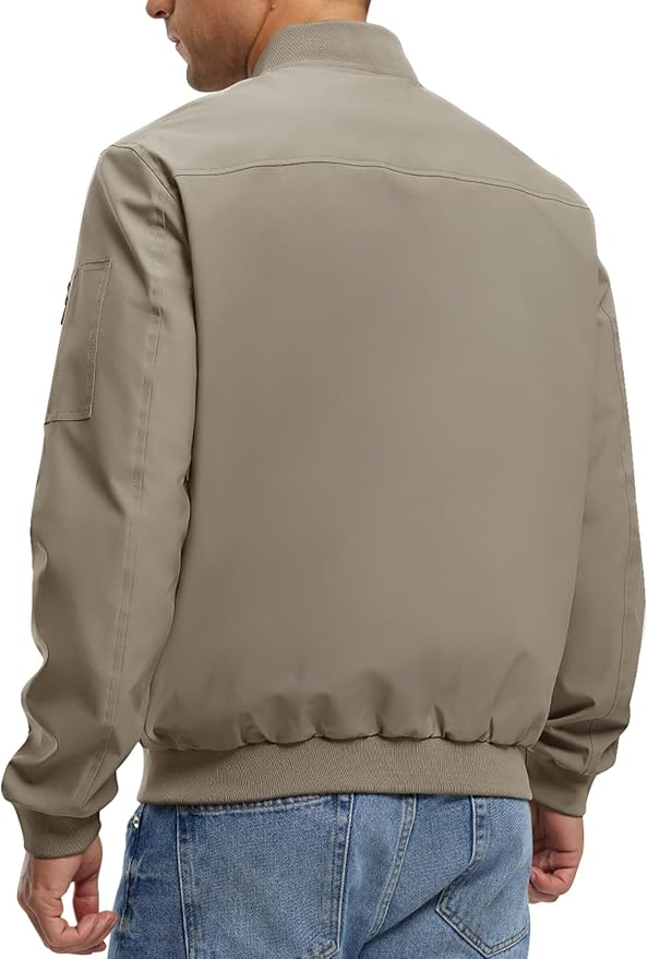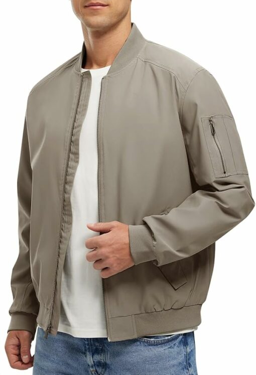 - Men’s lightweight bomber jacket features a full-zip front and a bomber collar, ribbed cuffs and hem for a comfortable fit.