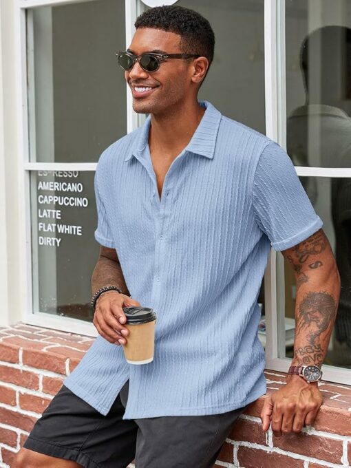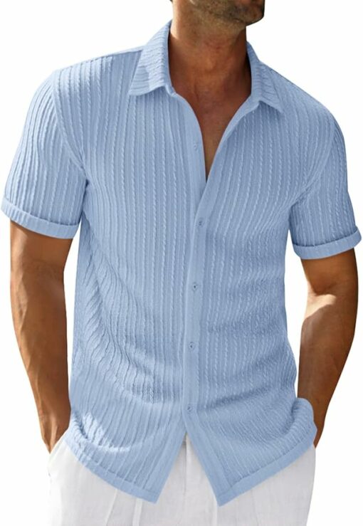 - Fabric: Our casual button down shirt is made of 97%Polyester, 3%Elastane, cable knit, breathable, lightweight, soft, skin-friendly and elastic material, giving you a comfortable wearing experience. The soft material will bring you a casual look