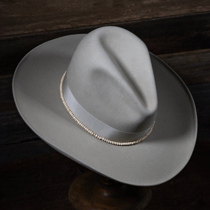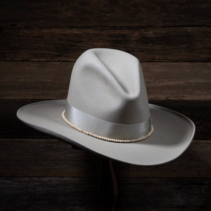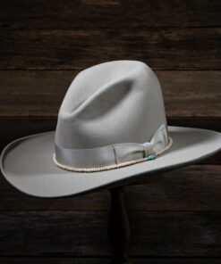 The Old West Cowboy Hat is constructed of quality fur felt and features a sloped crease crown, interior quality sweatband.