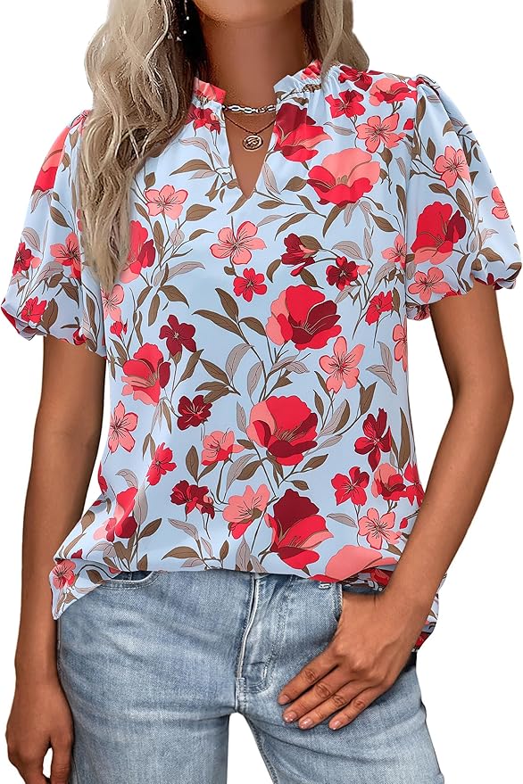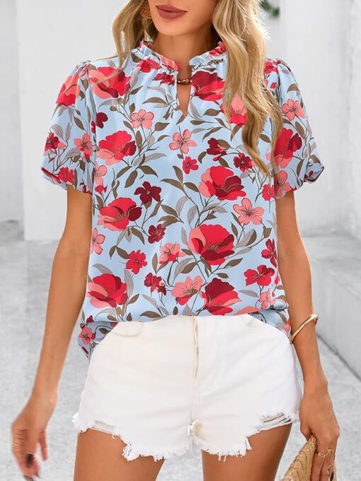 - Material: This womens tops short sleeve is made from chiffon fabric, which has a soft and lightweight texture that gives your skin a silky touch. It is lined on the inside and not see through.