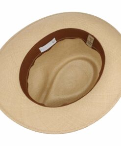 This summery fedora is made up of fine Panama straw with a smooth quality. Not only does the monochrome summer hat sit firmly and comfortably, it is also impressively stylish with its characteristically dented crown and grosgrain ribbon trim with decorative seams. The straw hats striking charm will win you over, whilst impressing you with its confident elegance.