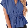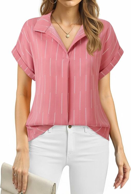 - Material: 100% Polyester.High-quality chiffon material.soft,wrinkle free,lightweight,breathable and not see-through.When wearing these short sleeve blouses for women,you will feel that the fabric is silky smooth and skin friendly.